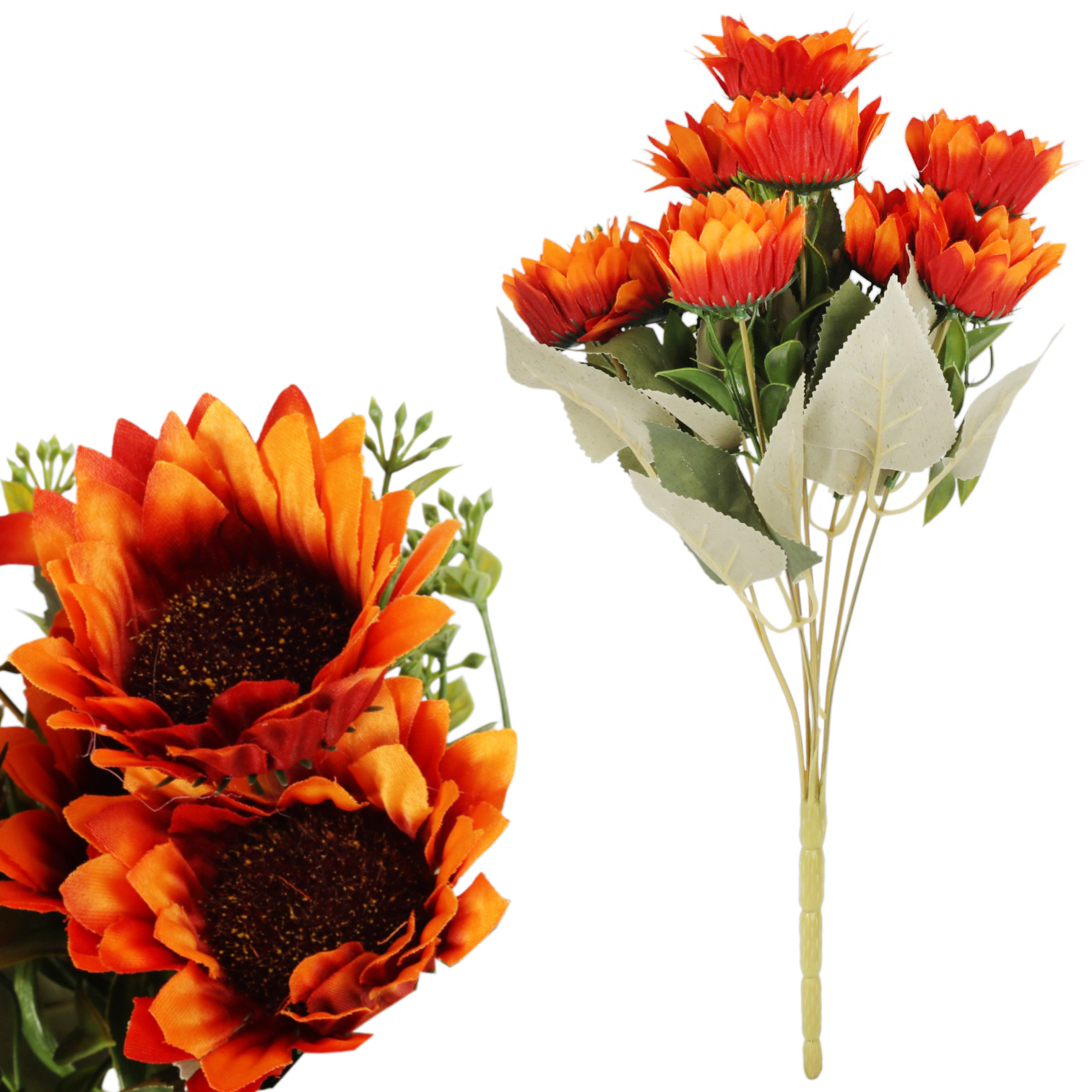 BUKIET SŁONECZNIKÓW Z DODATKAMI sztuczne kwiaty do wazonu KOMPOZYCJA pomarańczowa 42 cm