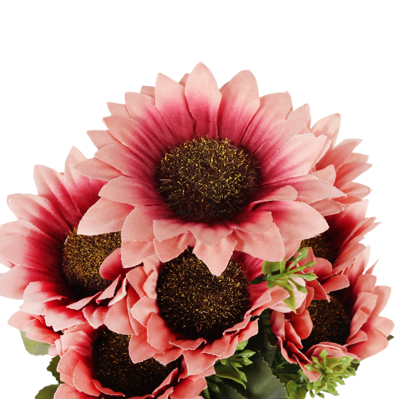BUKIET SŁONECZNIKÓW Z DODATKAMI sztuczne kwiaty do wazonu KOMPOZYCJA różowa 42 cm