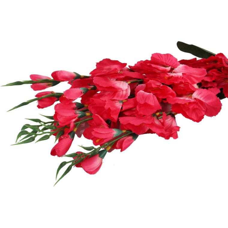 Sztuczny kwiat w formie bukietu pięciu gladioli to doskonała dekoracja, która łączy w sobie wysoką jakość wykonania i estetyczny wygląd, sprawiając, że wygląda jak prawdziwy. Ten efektowny bukiet idealnie nadaje się zarówno jako samodzielna ozdoba, jak i element kompozycji kwiatowej, która wprowadzi świeżość i kolor do każdego wnętrza. Dzięki swojej uniwersalności, ten bukiet doskonale udekoruje Twoje otoczenie, niezależnie od okazji. Jego imponująca długość wynosząca 65 cm sprawia, że będzie przyciągał wzrok i dodawał charakteru w każdym pomieszczeniu. Wybierz ten bukiet gladioli, aby wnieść do swojego domu odrobinę elegancji i uroku, ciesząc się jednocześnie trwałością i bezproblemową pielęgnacją.