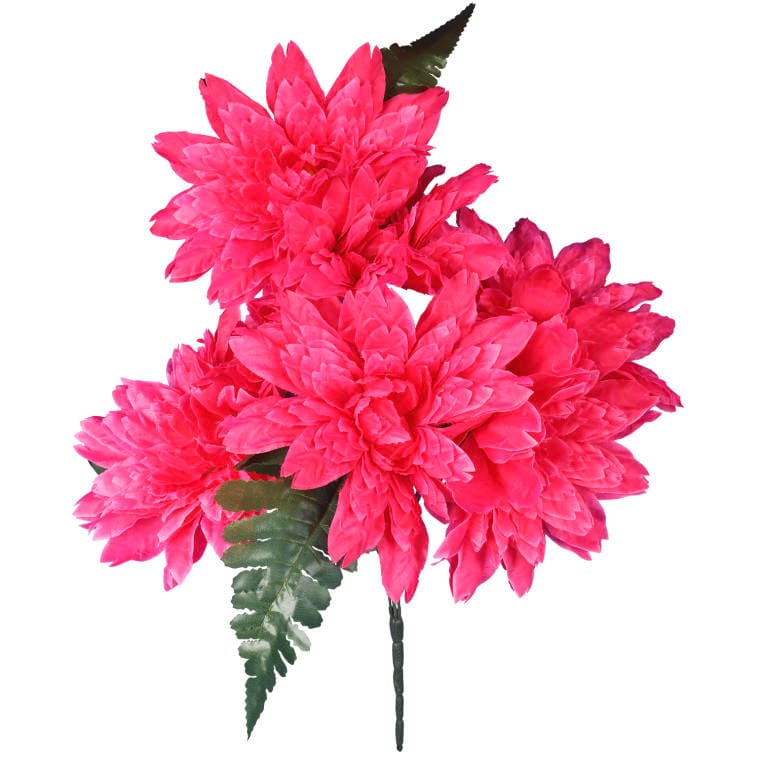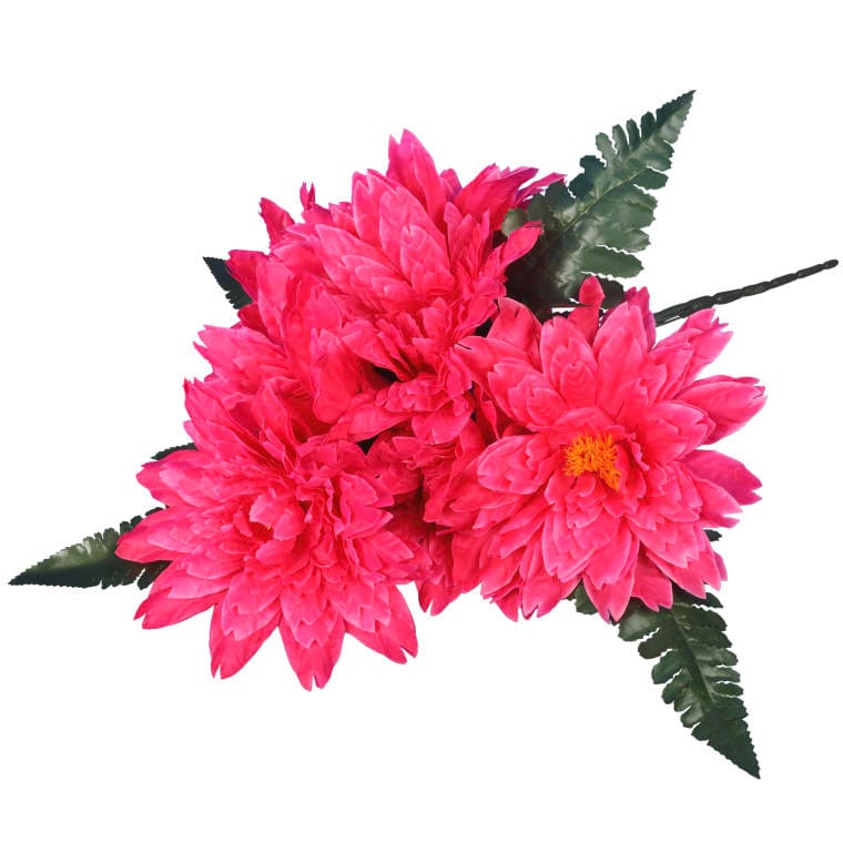 Bukiet sztucznych kwiatów 7 dalii z dodatkiem liści paproci w kolorze ciemnoróżowym