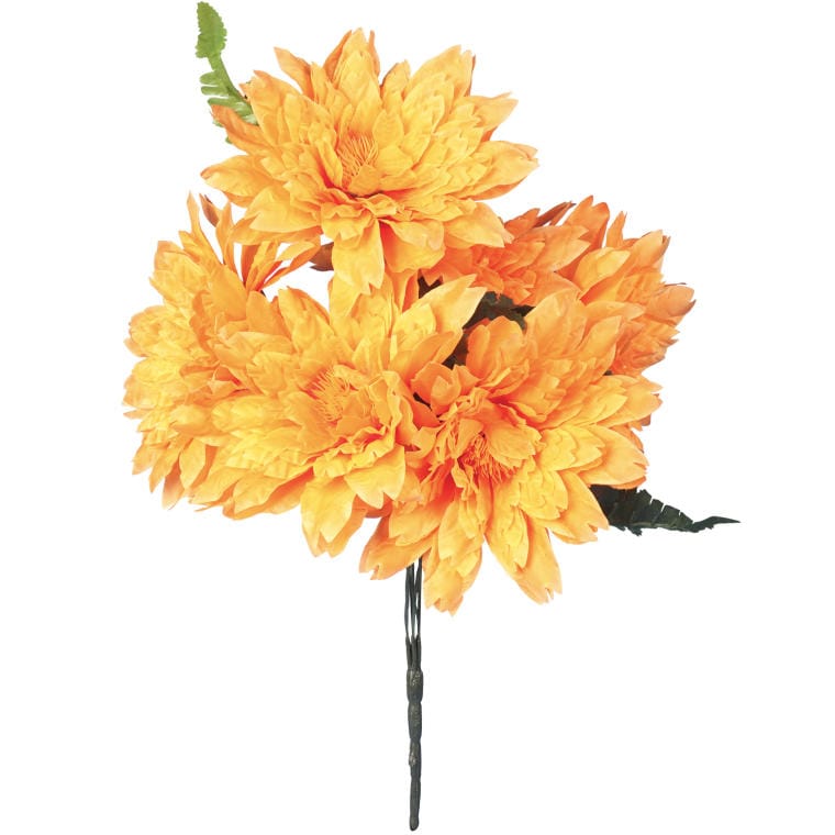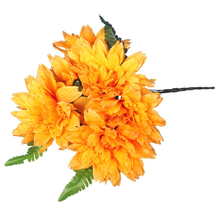 Bukiet sztucznych kwiatów 7 dalii z dodatkiem liści paproci w kolorze pomarańczowym