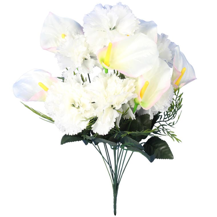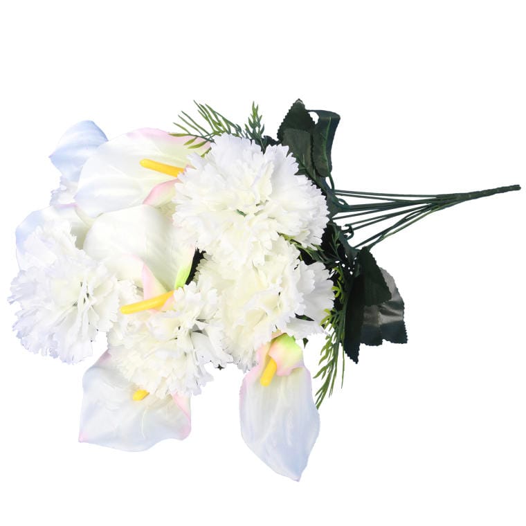 Bukiet sztucznych kwiatów mix 12 goździków z callą w kolorze białym