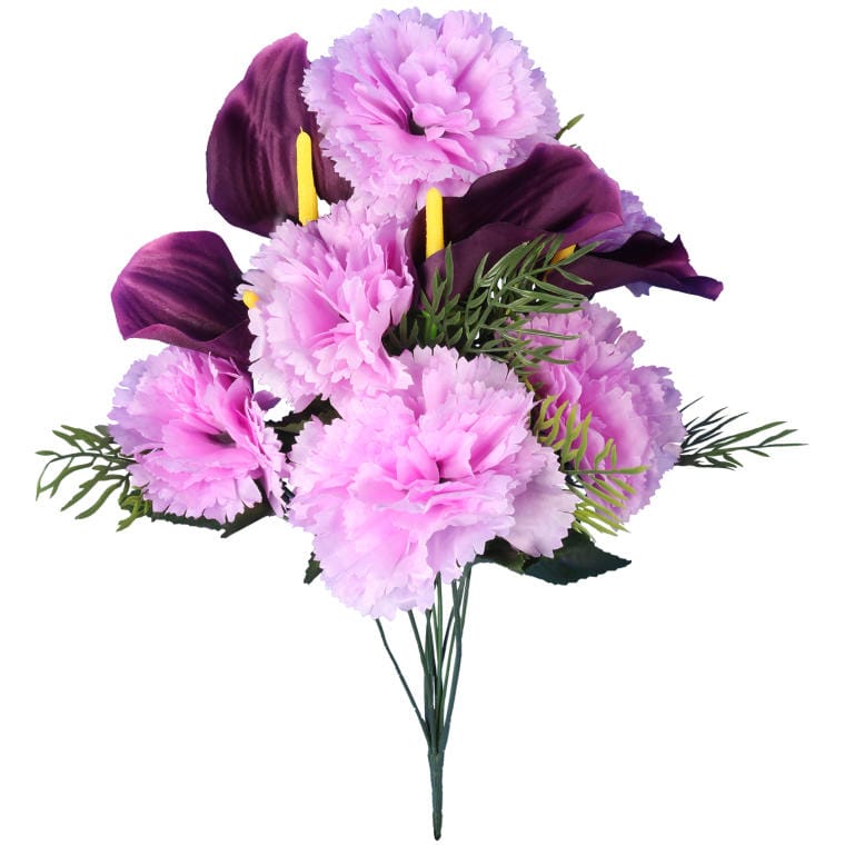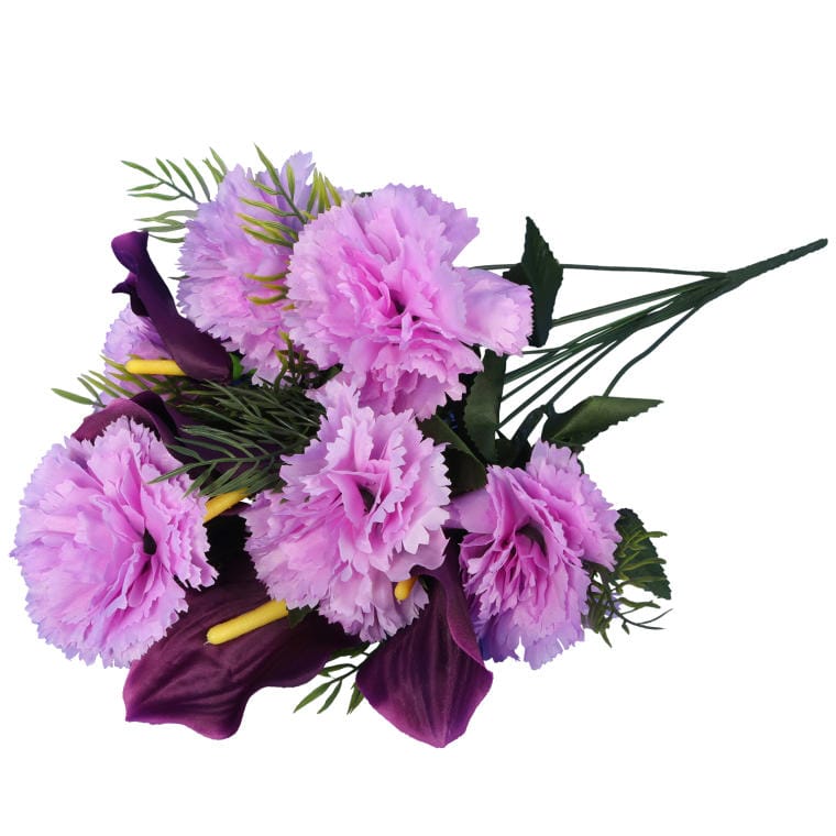 Bukiet sztucznych kwiatów mix 12 goździków z callą w kolorze fioletowo-wrzosowym