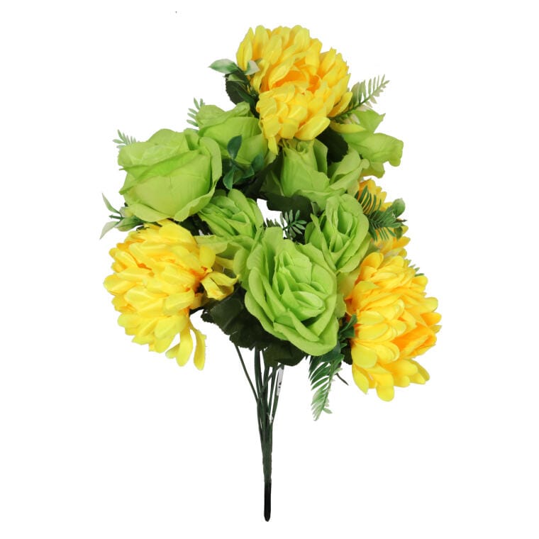 Bukiet sztucznych kwiatów mix róży i chryzantemy w kolorze żółto zielonym 50 cm