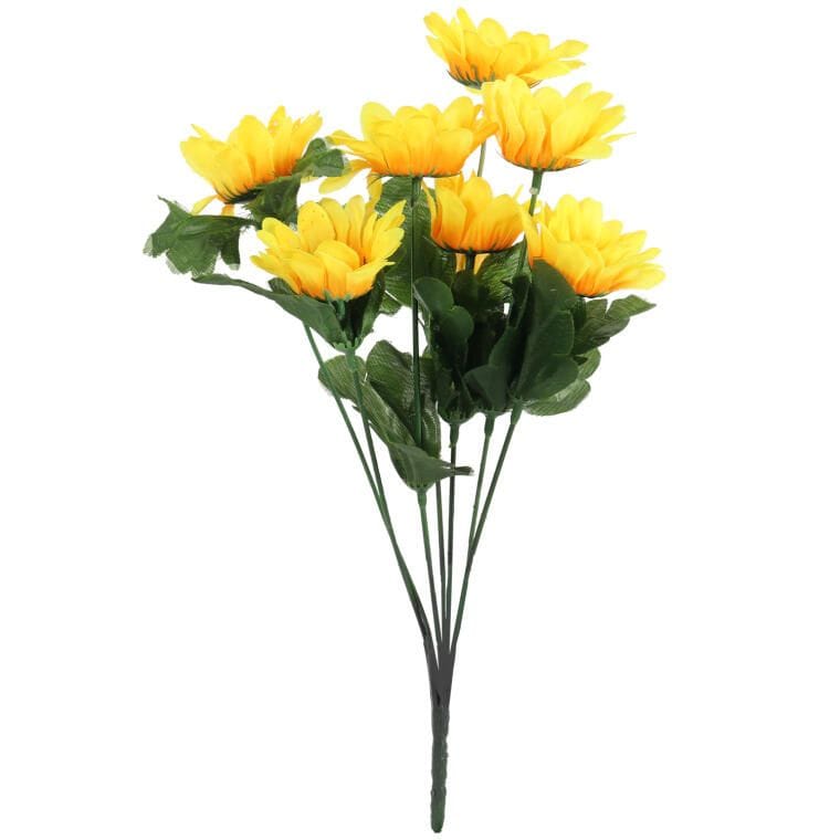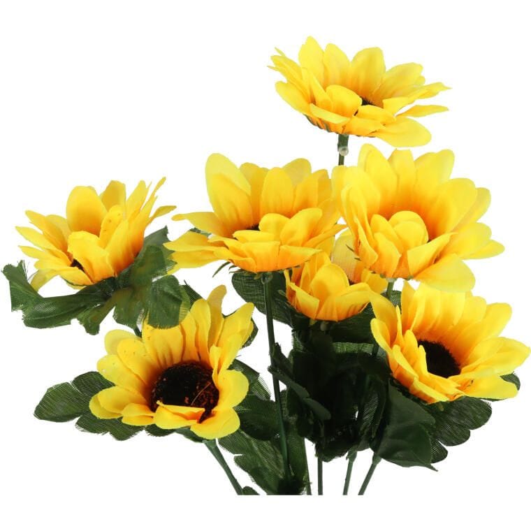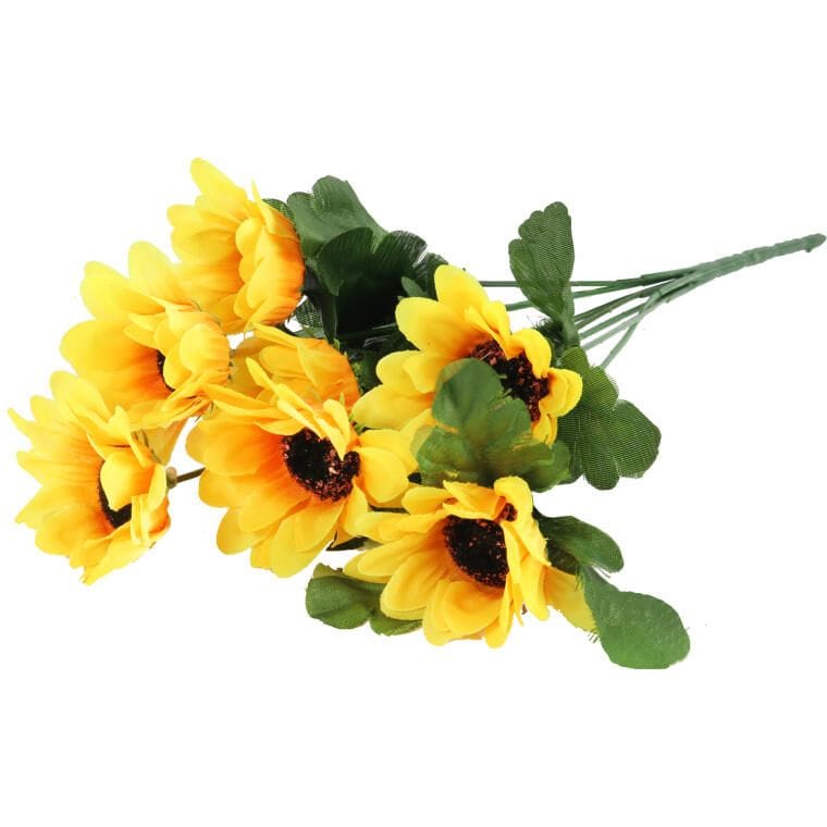 Bukiet 7 słoneczników o wysokości 35 cm to znakomita propozycja dla osób pragnących wprowadzić do swojego otoczenia promienny urok i radość. Wykonany z materiałów najwyższej jakości, ten sztuczny bukiet do złudzenia imituje żywe kwiaty, co czyni go idealnym rozwiązaniem zarówno jako samodzielna dekoracja, jak i element różnorodnych kompozycji florystycznych. Dzięki realistycznemu wyglądowi, bukiet 7 słoneczników doskonale prezentuje się w wazonie, na stole czy jako część większych aranżacji. Jego słoneczne kolory wniosą świeżość i optymizm do każdego wnętrza, a jednocześnie nie wymagają żadnej pielęgnacji. Wybierz ten efektowny bukiet sztucznych słoneczników, aby cieszyć się ich pięknem przez cały rok, tworząc niepowtarzalną atmosferę w swoim domu.