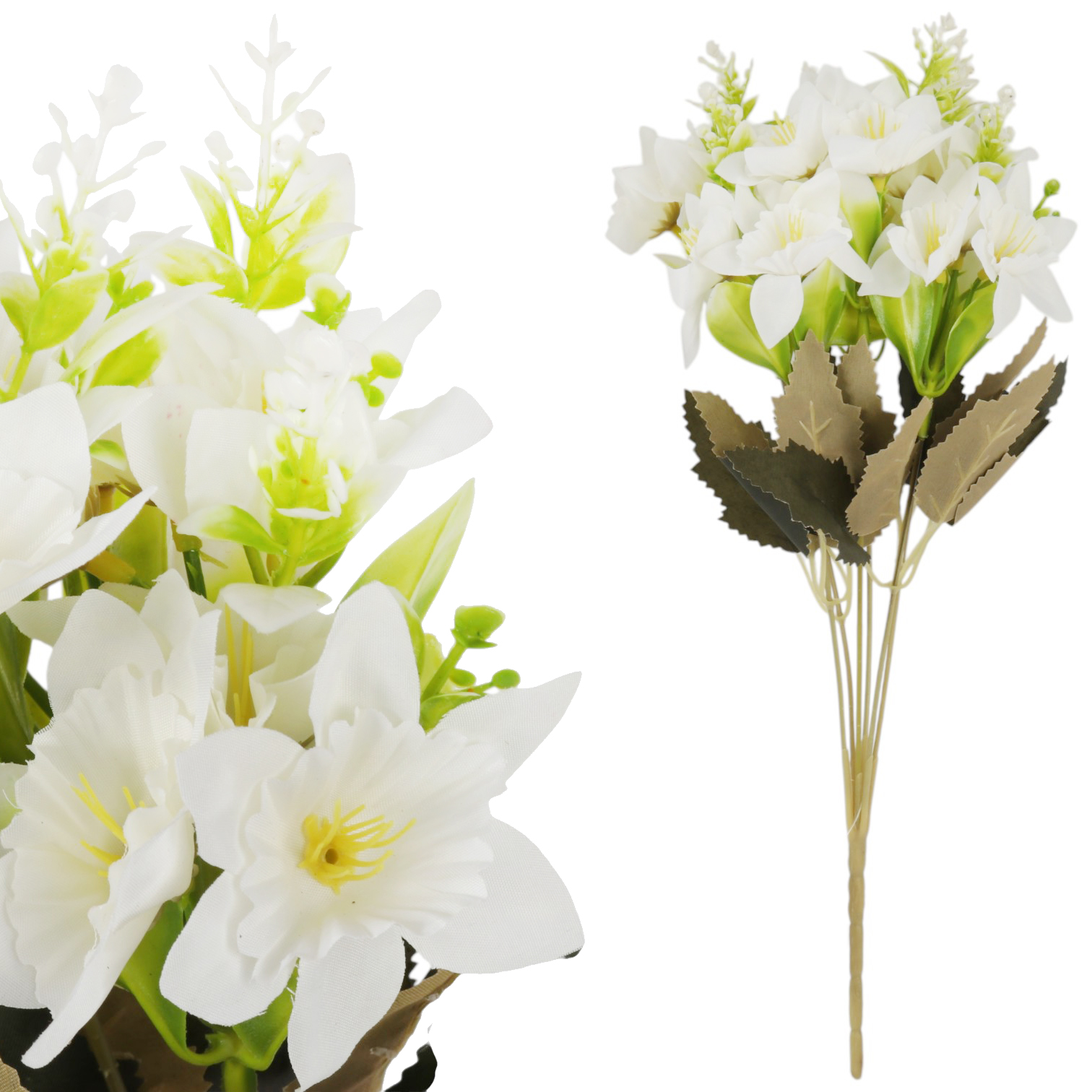 BUKIET ŻONKILI Z DODATKAMI sztuczne kwiaty do wazonu KOMPOZYCJA biała 36 cm