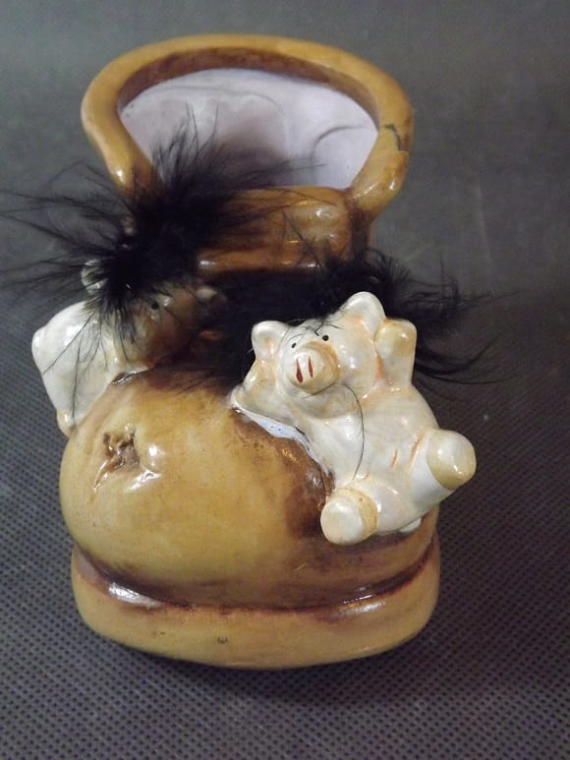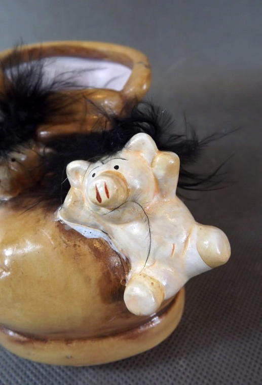 Ceramiczna osłonka na doniczkę w kształcie buta z rozbrykanymi świnkami