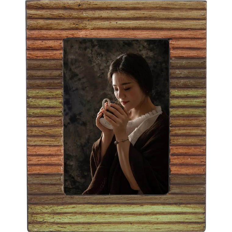 Ceramiczna zielono-pomarańczowa stojąca ramka na zdjęcie