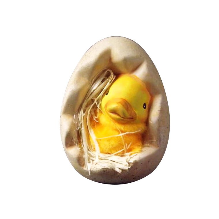 Ceramiczny kurczaczek z żółtym futerkiem wystający z jajka 9×6 cm