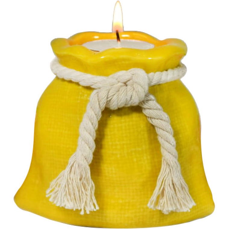 Ceramiczny Świecznik na Tealight w Kształcie Woreczka na Pieniądze – Żółty