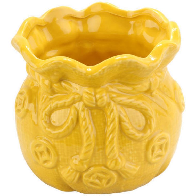 Ceramiczny Wazonik-Skarbonka w Kształcie Sakiewki Żółty