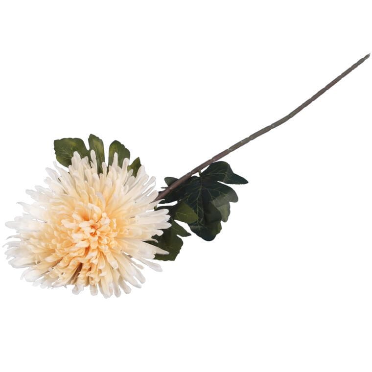 Kwiat sztuczny chryzantema w kolorze kremowym o wysokości 76 cm i średnicy kwiatostanu 17 cm to elegancka dekoracja, która dzięki wysokiej jakości materiałom do złudzenia przypomina naturalny kwiat. Kremowa chryzantema wprowadza do wnętrza świeży i subtelny akcent, nadając aranżacjom nowoczesny i przytulny charakter. Kwiat sztuczny doskonale sprawdzi się jako samodzielna ozdoba w wazonie, a także jako element większych kompozycji florystycznych, bukietów, stroików i dekoracji okolicznościowych. Starannie wykonana chryzantema zapewnia trwałość i realistyczny wygląd przez wiele sezonów, podkreślając elegancję i wyjątkowy styl każdej przestrzeni. Kremowa chryzantema sztuczna to praktyczne rozwiązanie dla osób szukających dekoracji imitujących żywe rośliny, które nie wymagają pielęgnacji.