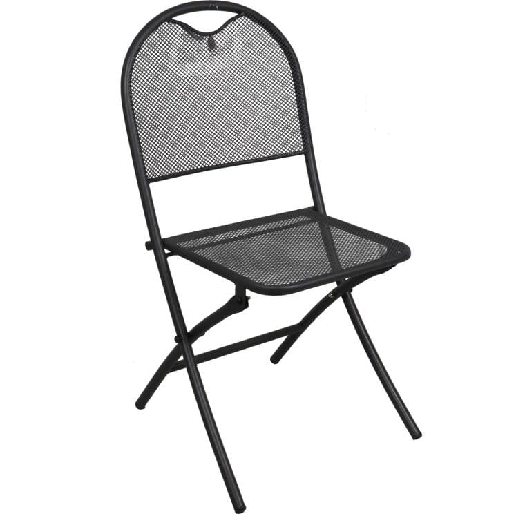 Czarne, składane krzesło ogrodowe z metali, o prostej linii designu