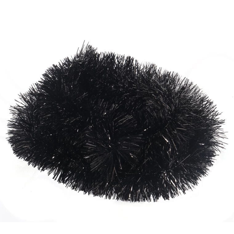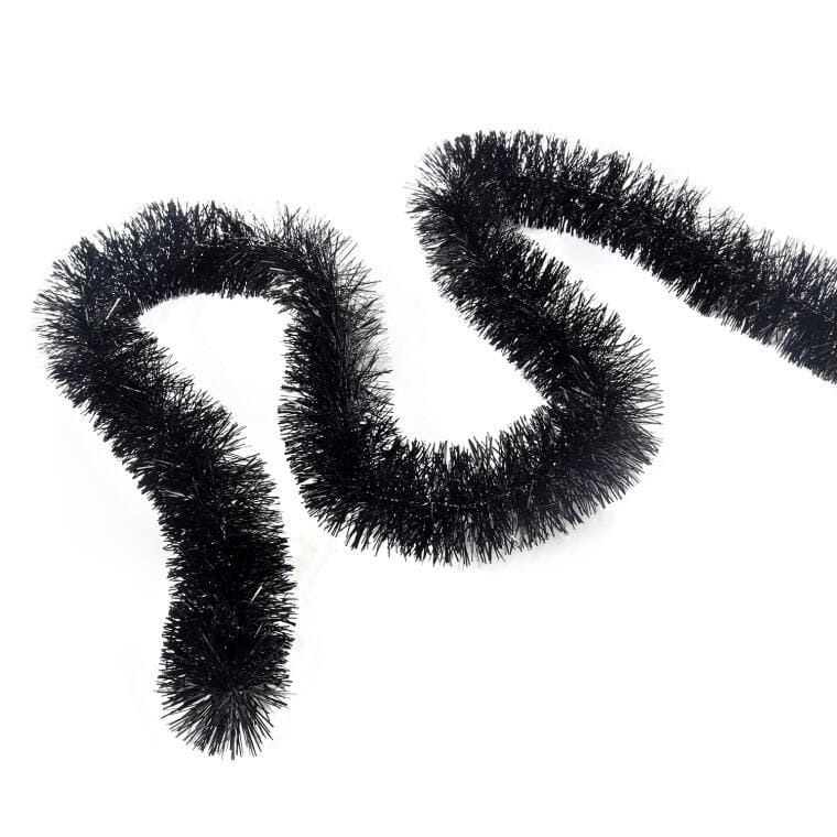 Czarny metalizowany łańcuch choinkowy o szerokości 7 cm i długości 2 m.