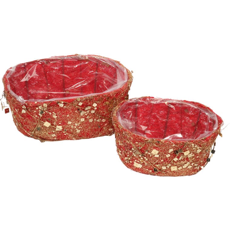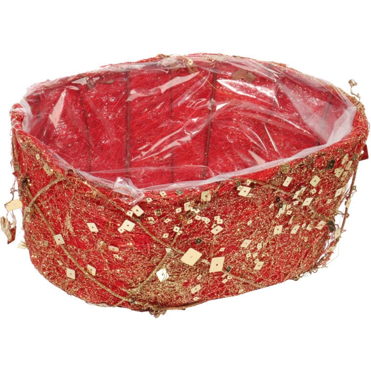 Czerwona Bazowa Osłonka Stroików Świątecznych z Sizalu i Cekinów 24cm