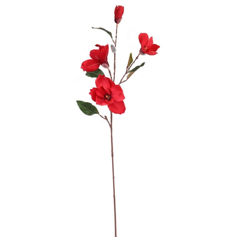 Czerwona gałązka z 4 sztucznymi magnoliami o długości 78 cm
