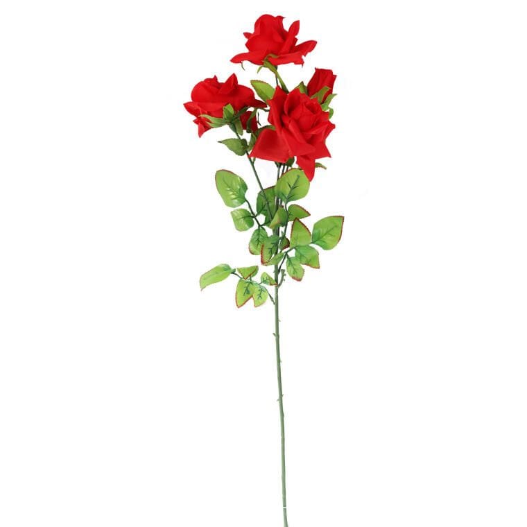 Czerwona gałązka z 4 sztucznymi różami o realistycznym wyglądzie, 80 cm