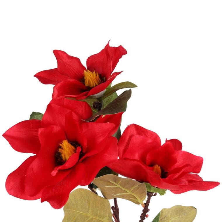 Czerwona Gałązka z Trzema Magnoliami – Dekoracja Wysokiej Jakości