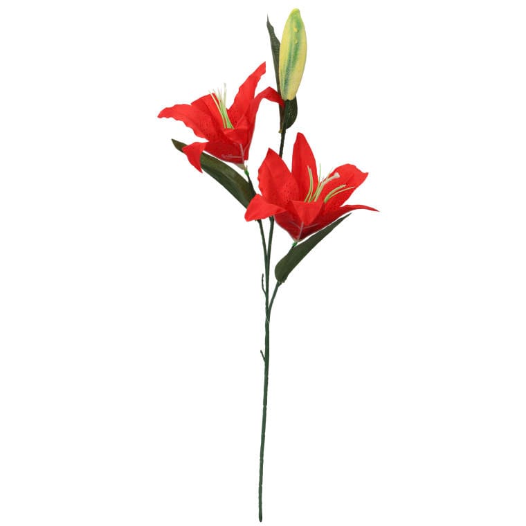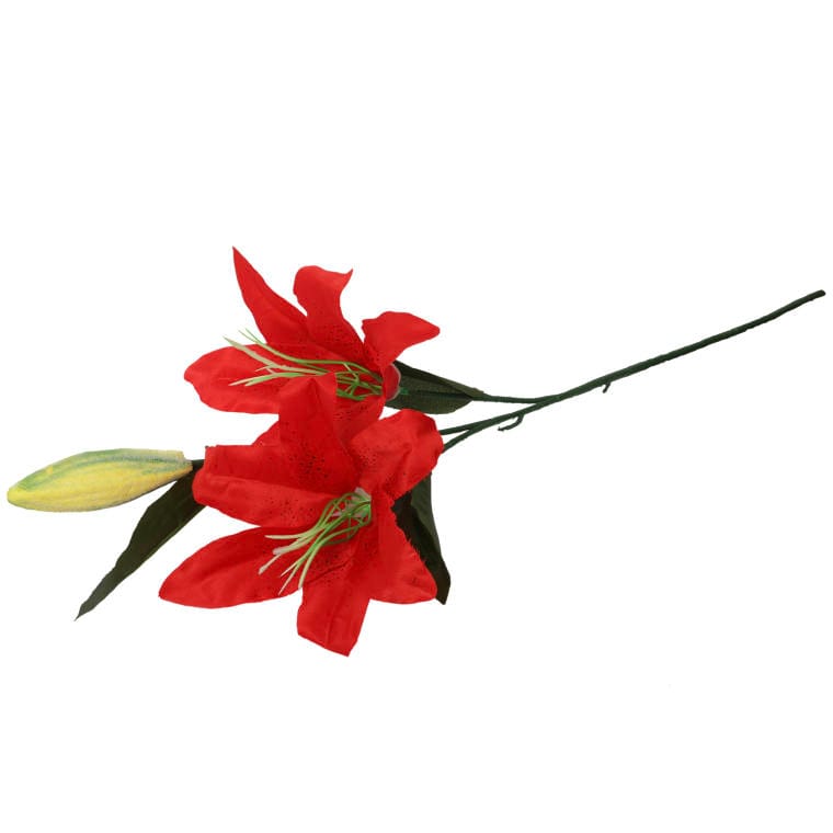 Czerwona Sztuczna Gałązka z Dwoma Liliami i Pąkiem – 75 cm