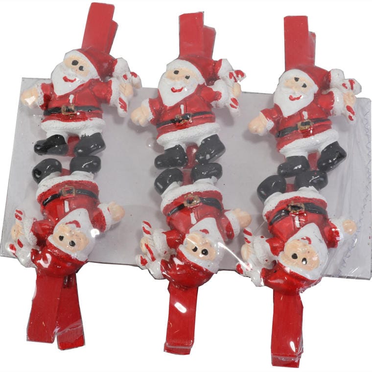 Czerwone klamerki świąteczne z figurką Mikołaja, 5 cm – zestaw 6 sztuk