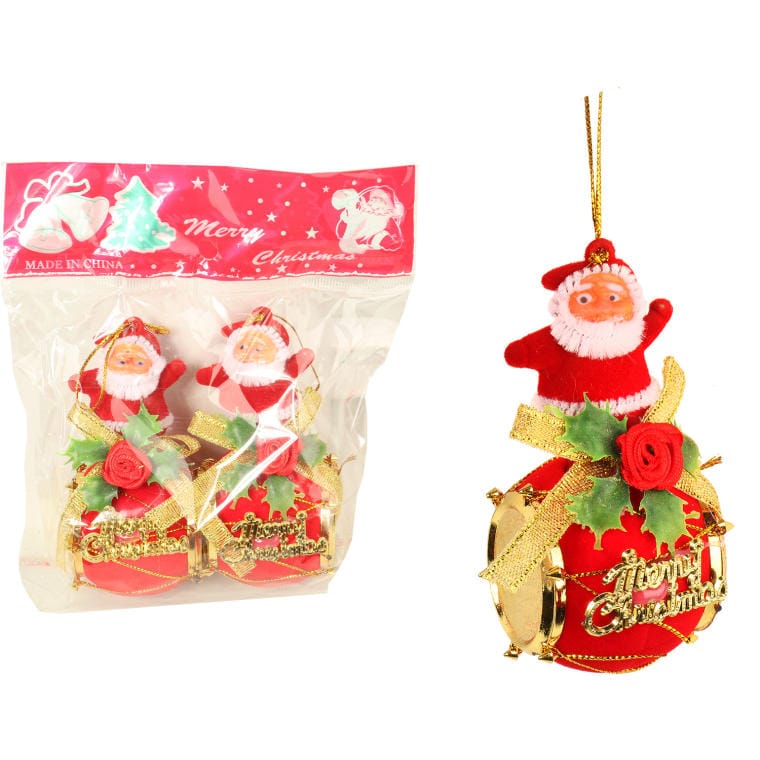 Czerwone Zawieszki Świąteczne – Mikołaje na Bębenkach (Komplet 2 sztuk)
