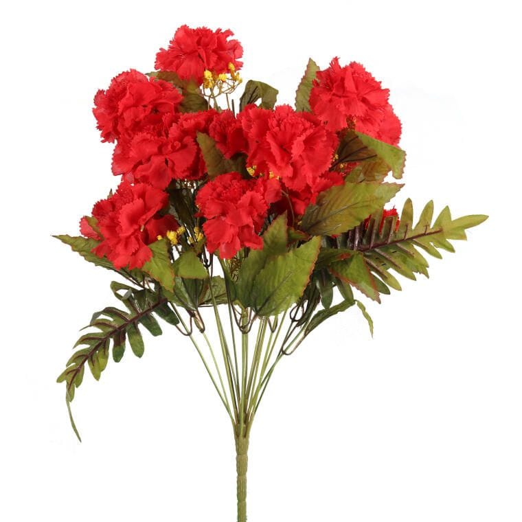 Czerwony Bukiet Sztucznych Goździków z Paprotkami – 18 Szczegółowo Odwzorowanych Kwiatów, Wysokość 48 cm