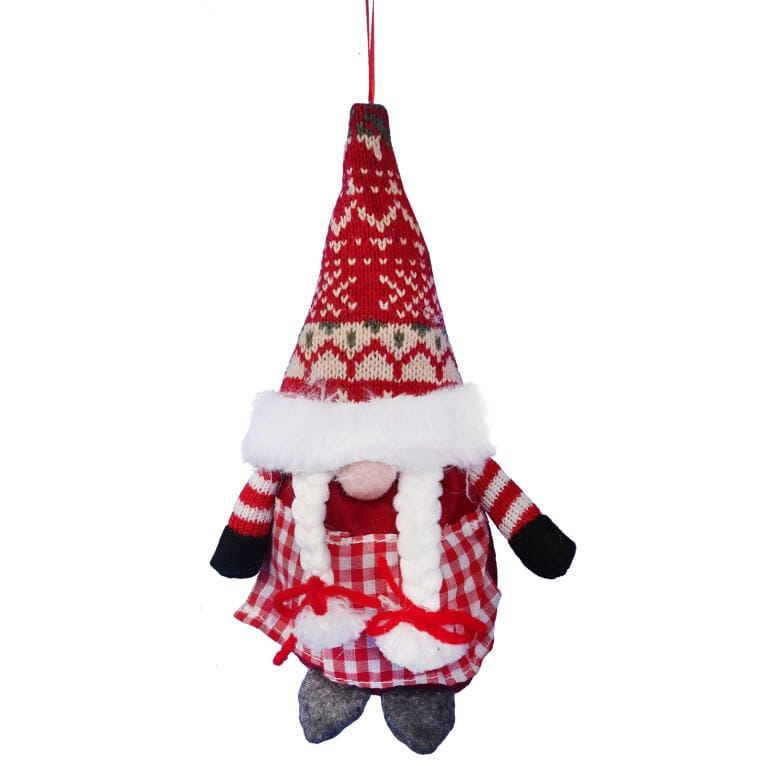 Czerwony Skrzat Bożonarodzeniowy z Warkoczykami jako Zawieszka na Choinkę 20cm