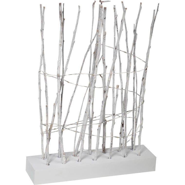 Białe gałązki z 20 lampkami LED to niezwykła dekoracja, która wnosi do każdego wnętrza przyjemny klimat i elegancję. Lampki emitują ciepłe, przytulne światło, tworząc magiczną atmosferę idealną na różnorodne okazje. Oryginalny design tej ozdoby, o wysokości 28 cm, głębokości 7cm i długości 37 cm, doskonale sprawdzi się jako efektowny akcent w Twoim domu, nadając mu unikalny charakter. Dzięki zasilaniu na 3 baterie AA, dekoracja jest niezwykle praktyczna i łatwa w użyciu, co pozwala na swobodne umieszczanie jej w dowolnym miejscu bez potrzeby podłączenia do gniazdka. To idealne rozwiązanie dla tych, którzy pragną wzbogacić swoje wnętrza o elementy świąteczne, romantyczne lub minimalistyczne, zapewniając wyjątkowy efekt wizualny, który zachwyci wszystkich gości.
