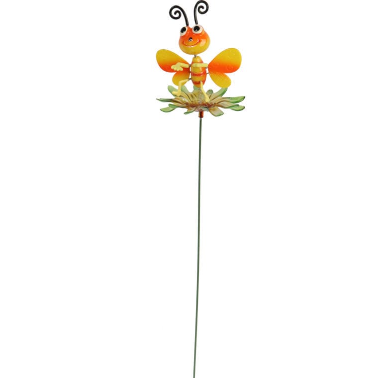 Kolorowy, radosny motylek w pomarańczowym kolorze, osadzony na zielonym kwiatku, to urocza ozdoba, która wprowadzi do Twojego ogrodu niepowtarzalny klimat. Wykonana z metalu, ta dekoracja charakteryzuje się ruchomymi skrzydłami, główką, czółkami i nóżkami, co sprawia, że motylek wydaje się niezwykle żywy. O wysokości 73 cm, idealnie nadaje się do wbicia w ziemię lub doniczkę, dodając koloru i radości każdej przestrzeni zewnętrznej. Gdy zawieje wiatr, zobaczysz, jak motylek trzepocze skrzydłami i porusza się, tworząc wesoły efekt. Ta metalowa ozdoba to doskonały sposób na udekorowanie ogródka, tarasu czy balkonu, sprawiając, że każda chwila spędzona na świeżym powietrzu stanie się jeszcze bardziej przyjemna.