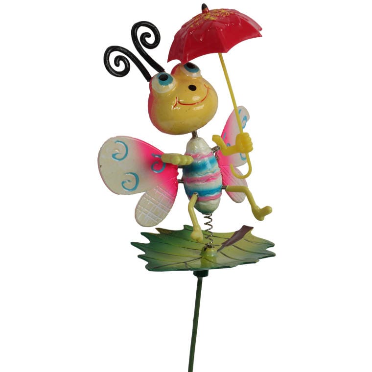 Kolorowy motylek z parasolką na zielonym listku to radosna i pełna uroku ozdoba, która ożywi każdy ogródek lub przestrzeń balkonową. Wykonany z metalu, ten wesoły motyl w odcieniach różowo-niebieskich zachwyca detalami – jego ruchome skrzydła, główka, czółka oraz nóżki dodają mu animowanego charakteru. Wbij tę urokliwą dekorację w ziemię lub doniczkę, aby stworzyć wesołą atmosferę w swoim otoczeniu. Gdy zawieje wiatr, motyl zacznie trzepotać skrzydłami, wprowadzając do ogrodu żywe ruchy i magię. Z całkowitą wysokością 73 cm, ta metalowa ozdoba stanie się pięknym akcentem, przyciągającym uwagę i umilającym chwile spędzone na świeżym powietrzu.