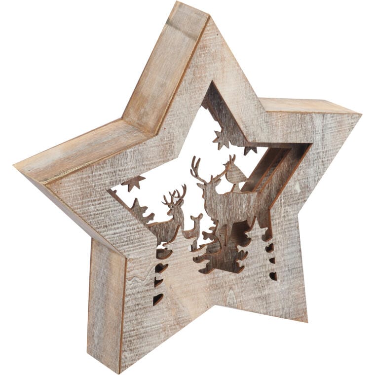 Dekoracja świetlna w formie drewnianej gwiazdy z reniferami to wyjątkowy element świątecznej aranżacji, który doskonale sprawdzi się zarówno jako ozdoba pod choinką, jak i samodzielna dekoracja stojąca, nadając Twojemu wnętrzu niepowtarzalny klimat. To urocze oświetlenie emituje klimatyczne światło, które wprowadza przytulną atmosferę pełną magii Bożego Narodzenia, idealnie komponując się z innymi elementami świątecznymi. Dzięki klasie ochrony IP 20, produkt jest przeznaczony do użytku wewnętrznego, co czyni go bezpiecznym wyborem do dekoracji domowych przestrzeni. Zasilany dwoma bateriami AA, ten praktyczny detal ma wymiary 24 x 24 x 4,9 cm, co sprawia, że jest łatwy do umieszczenia w dowolnym miejscu, tworząc harmonijną kompozycję z innymi dekoracjami. Wprowadź radość i świąteczną magię do swojego domu dzięki tej pięknej gwieździe, która będzie doskonałym dodatkiem do Twoich świątecznych aranżacji.