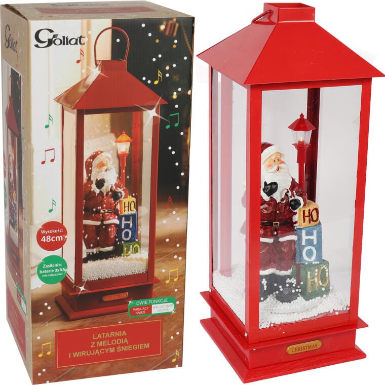 Wbudowany wentylator automatycznie powoduje wirujące opadanie śniegu, co dodaje realizmu tej urokliwej scenie. Dodatkowo, oświetlenie LED zapewnia piękne podświetlenie latarni, tworząc przytulną atmosferę. Latarnia jest łatwa w obsłudze dzięki praktycznemu włącznikowi. Zasilana trzema bateriami AA (baterie nie są dołączone), umożliwia elastyczne ustawienie w dowolnym miejscu, bez konieczności podłączania do prądu. Jej imponujące wymiary 48 cm sprawiają, że latarnia z pewnością przyciągnie uwagę i stanie się nieodłącznym elementem Twoich świątecznych dekoracji. Wybierz tę latarnię, aby wprowadzić do swojego domu niepowtarzalny, świąteczny klimat, który zachwyci wszystkich gości!