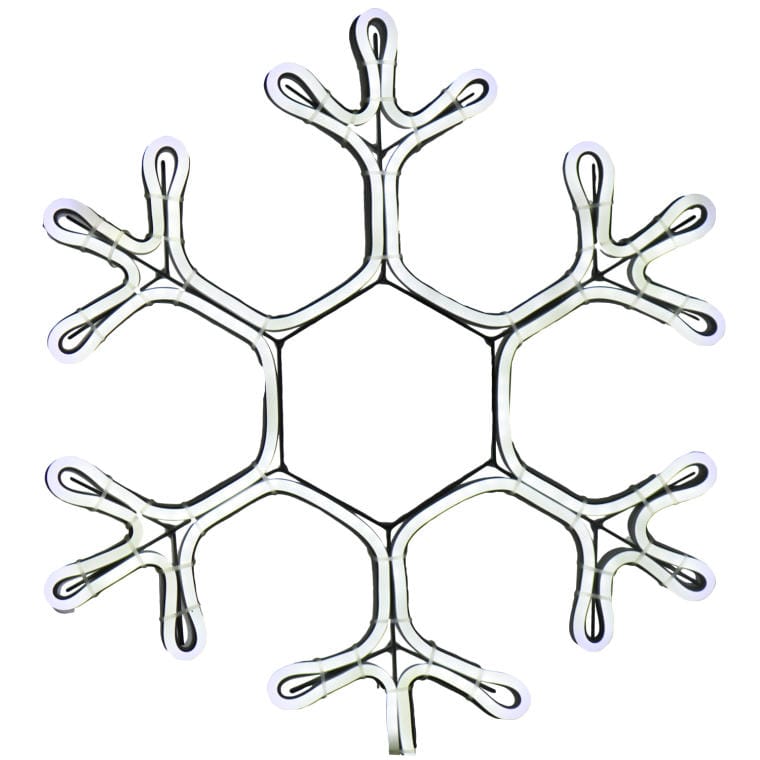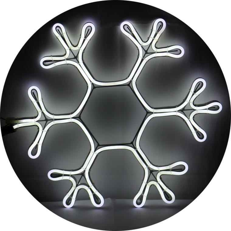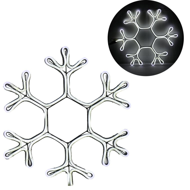 Dekoracja Świetlna NEON – Biała Śnieżynka o Wysokości 38cm, Do Zastosowań Zewnętrznych, Zasilanie Sieciowe IP44, 120l/Metr, Długość Przewodu 1.5m