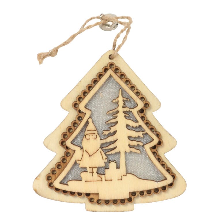 Dekoracja świetlna ZAWIESZKA drewniana choinka 11 cm
