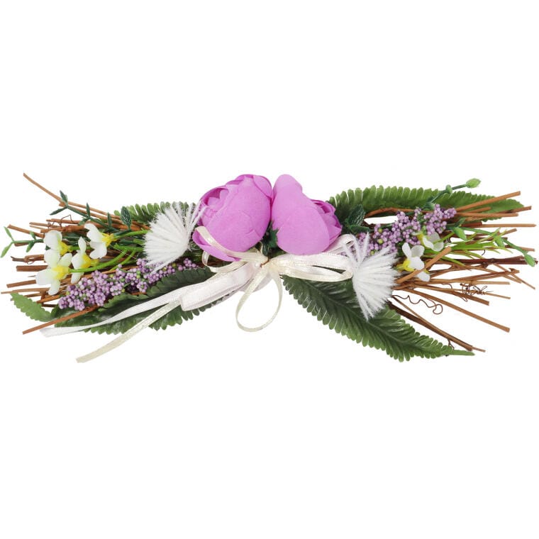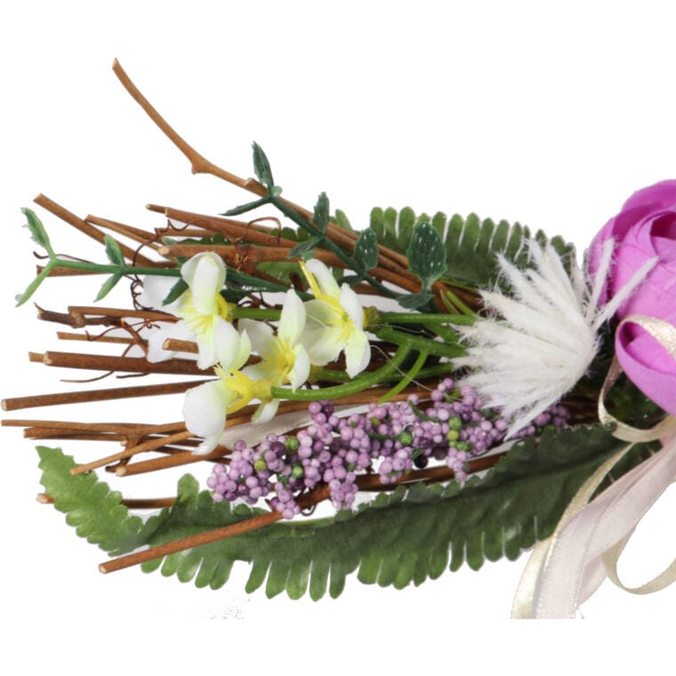 Dekoracja wiosenna w formie kompozycji z kwiatami to wyjątkowy element, który doda uroku i świeżości każdemu wnętrzu. Ta piękna ozdoba, idealna do zawieszenia lub położenia na stole, natychmiast wprowadzi radosny, świąteczno-wiosenny klimat, przekształcając Twoje otoczenie w kolorową przestrzeń pełną życia. O wielkości 25 cm, ta kompozycja z kwiatami zachwyca starannie dobranymi detalami, które przyciągają wzrok i emanują wiosenną energią. Dzięki wykorzystaniu wysokiej jakości materiałów, dekoracja jest trwała i zachowuje swój urok przez wiele sezonów. Umieść ją w widocznym miejscu, aby cieszyć się jej pięknem i wprowadzić do swojego domu odrobinę wiosennego blasku, który ożywi każdą przestrzeń.