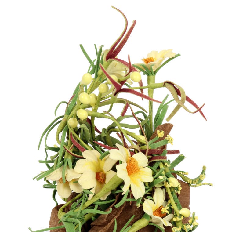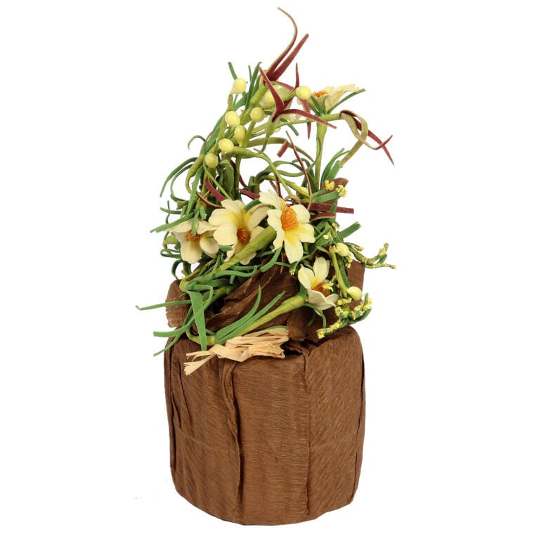 Kompozycja kwiatowa w eleganckiej, papierowej doniczce to idealny element subtelnej dekoracji, który sprawdzi się w każdym wnętrzu. Dzięki kompaktowym wymiarom 16×8 cm, z łatwością można ją postawić na stole, półce czy parapecie, dodając przestrzeni przytulności i naturalnego uroku. Doskonale sprawdzi się również jako oryginalny pomysł na prezent, który wniesie odrobinę świeżości i koloru do każdego domu. Zestaw brązowo-żółtych kwiatów tworzy harmonijną kompozycję, która podkreśla estetyczny charakter dekoracji. To wyjątkowy dodatek, który nada każdemu wnętrzu ciepły, naturalny akcent.