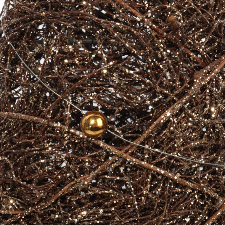 Dekoracyjna Choinka Świąteczna z Faszyny Brokatowej i Koralikami, 39 cm, Kolor Brązowy