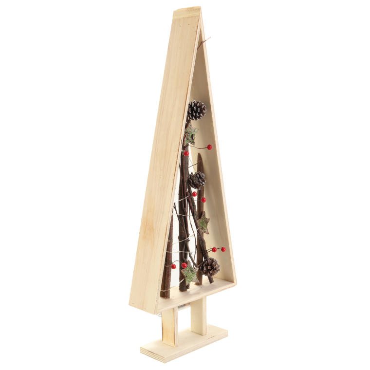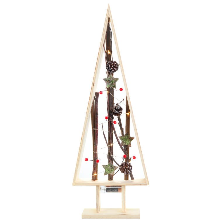 Dekoracyjna Drewniana Choinka z Oświetleniem LED i Naturalnymi Dodatkami