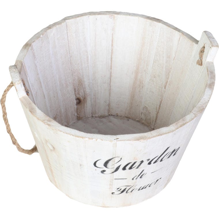Dekoracyjne drewniane wiaderko na taras lub do ogrodu 15×22 cm, białe