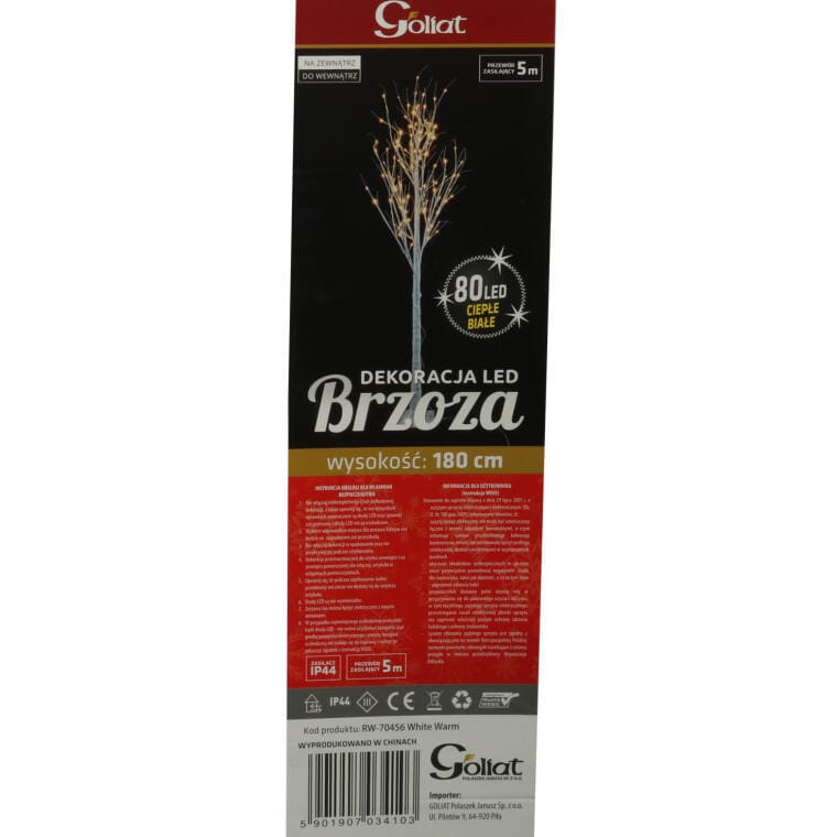 Odkryj magiczny świat świąt z dekoracyjnym drzewkiem o wysokości 180 cm, które wprowadzi niezapomnianą atmosferę do Twojego domu. Stworzenie wyjątkowego nastroju w tym szczególnym okresie to nasz priorytet, dlatego przedstawiamy to eleganckie drzewko, które doskonale komponuje się w różnych stylach aranżacji, ocieplając każde wnętrze oraz podkreślając jego walory estetyczne. Nasze drzewko, wyposażone w liście oraz nowoczesne oświetlenie LED, perfekcyjnie rozświetli Twoją przestrzeń, nadając jej unikalny i niepowtarzalny charakter. Z 80 lampkami LED, które emitują intensywne światło, to rozwiązanie nie tylko ładne, ale także funkcjonalne, z żywotnością diod sięgającą aż do 11 lat ciągłego świecenia, co czyni je praktycznym wyborem na lata. Lampki LED pozostają chłodne w dotyku, co zwiększa bezpieczeństwo ich użycia w porównaniu do tradycyjnych lampek. Dzięki długiemu przewodowi zasilającemu możesz swobodnie ustawić drzewko w dowolnym miejscu, co dodatkowo podnosi jego praktyczność. Oferowany kolor światła, ciepły biały, tworzy przytulną atmosferę, a biały kolor drzewka doskonale pasuje do każdej przestrzeni, zarówno wewnętrznej, jak i zewnętrznej. Drzewko to, zgodne z klasą ochrony IP44, jest idealne do użytku na tarasach, balkonach oraz w ogrodach, gdzie wprowadzi świąteczny klimat, który oczaruje każdego gościa. Wybierz nasze dekoracyjne drzewko, aby zrealizować swoje marzenia o świątecznej aranżacji, łącząc elegancję z funkcjonalnością w jednym wyjątkowym produkcie.
