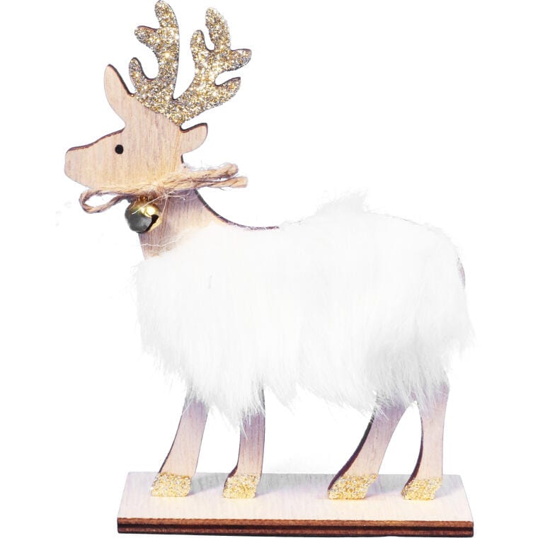 Dekoracyjny Renifer Drewniany z Futerkiem i Bożonarodzeniowym Dzwonkiem