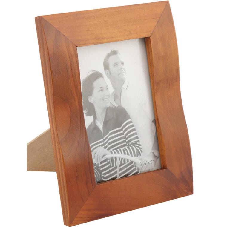 Drewniana stojąca falowana ramka na zdjęcie w kolorze brązowym 14 x 17,7 cm