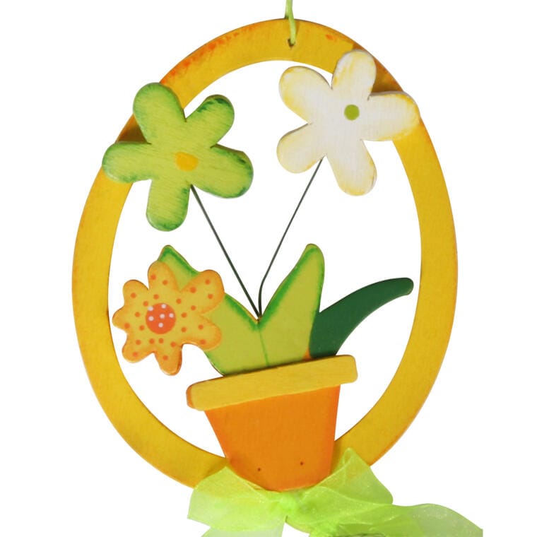 DREWNIANA ZAWIESZKA WIELKANOCNA JAJKO Z KWIATKAMI W KOLORZE ŻÓŁTO-ZIELONYM, 70CM