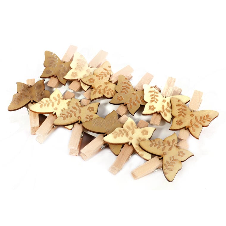 Drewniane Klamry Dekoracyjne w Kształcie Motyli – 12 Sztuk, 4,5 cm, Wielkanoc, Wiosna
