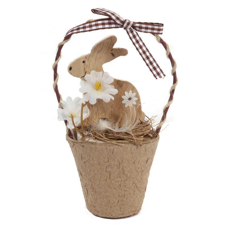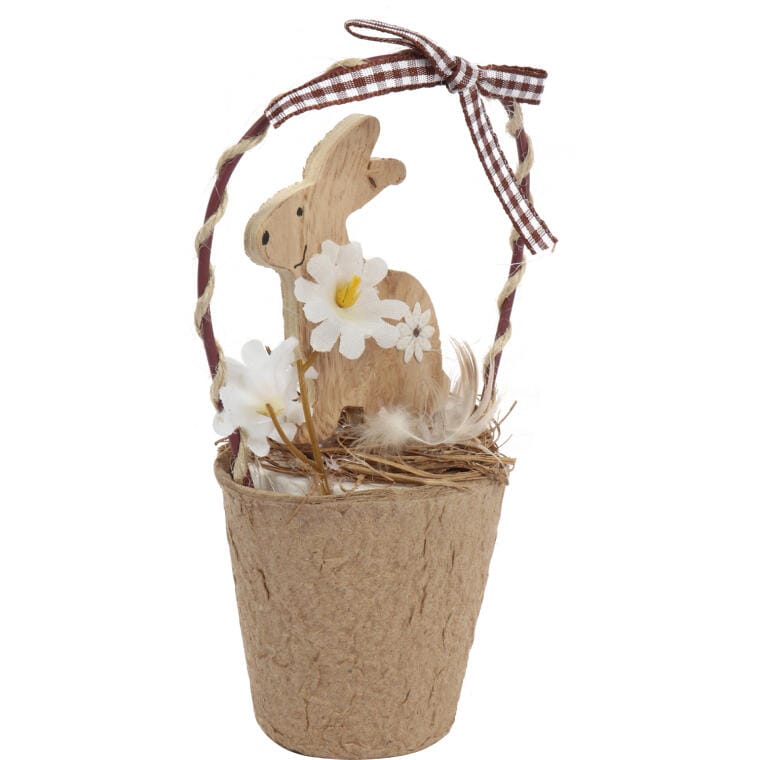 Drewniany Zajączek Wielkanocny w Koszyczku 16cm – Stroik Wiosenny z Jajkami i Siankiem