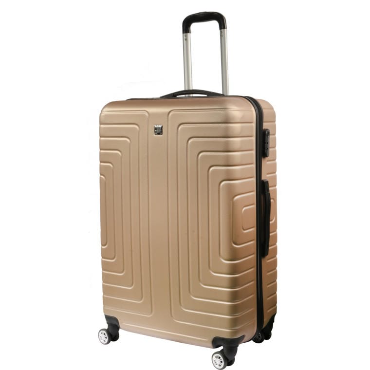 Duża Walizka Podróżna Kosmo 950 – Wytrzymała, Złota z Systemem Zabezpieczającym i Obracanymi Kółkami
