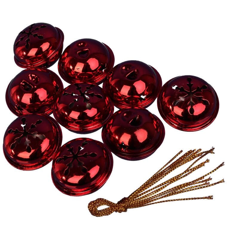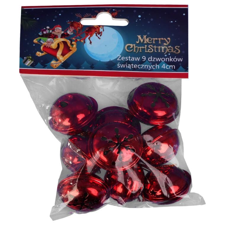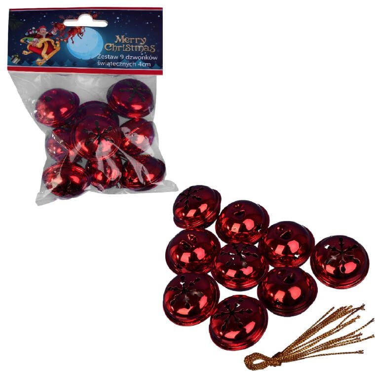DZWONKI MIKOŁAJA 9 SZT ZAWIESZKI METALOWE CZERWONE