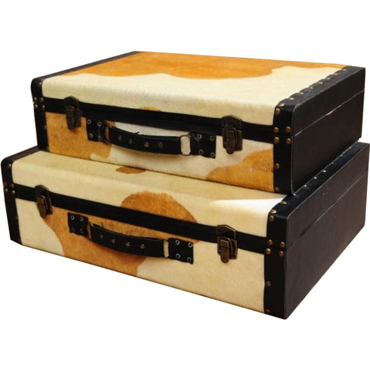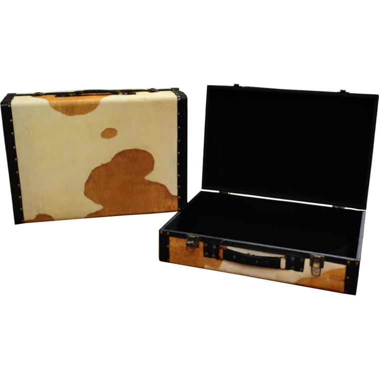 Elegancka Walizka Dekoracyjna z Imitacją Sierści Cielaka