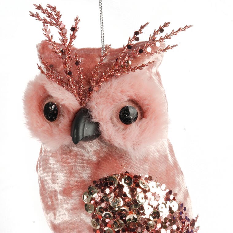 Elegancka Welurowa Zawieszka Świąteczna Sowa z Cekinami 25 cm – Kolor Różowy
