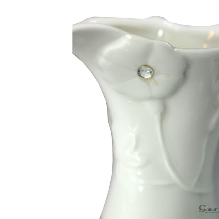 Elegancki biały mlecznik to klasyczny element zastawy stołowej, który doskonale wpisuje się zarówno w domową jadalnię, jak i w eleganckie wnętrza restauracyjne. Jego subtelny design, zdobiony delikatnymi kwiatami oraz błyszczącymi cyrkoniami, nadaje mu wyjątkowego uroku, czyniąc go idealnym dodatkiem do codziennych oraz odświętnych posiłków. Wysokość mlecznika wynosi 10 cm, co sprawia, że jest praktyczny i stylowy jednocześnie. Dla stworzenia spójnej i harmonijnej kompozycji możesz dokupić do kompletu cukierniczkę, filiżankę z talerzykiem oraz dzbanek, tworząc elegancki zestaw, który podkreśli każdą okazję.